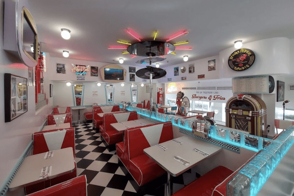🎶 The ambiance here doesn’t just whisper the ’50s; it screams it, in the most delightful way possible. From the jukebox playing classics that compel your feet to tap under the table, to the meticulous attention to detail in the decor, it’s like stepping onto the set of “Grease.” The diner promises and delivers an authentic journey back to the ’50s, down to the smallest detail, so that the experience is as immersive as possible.
