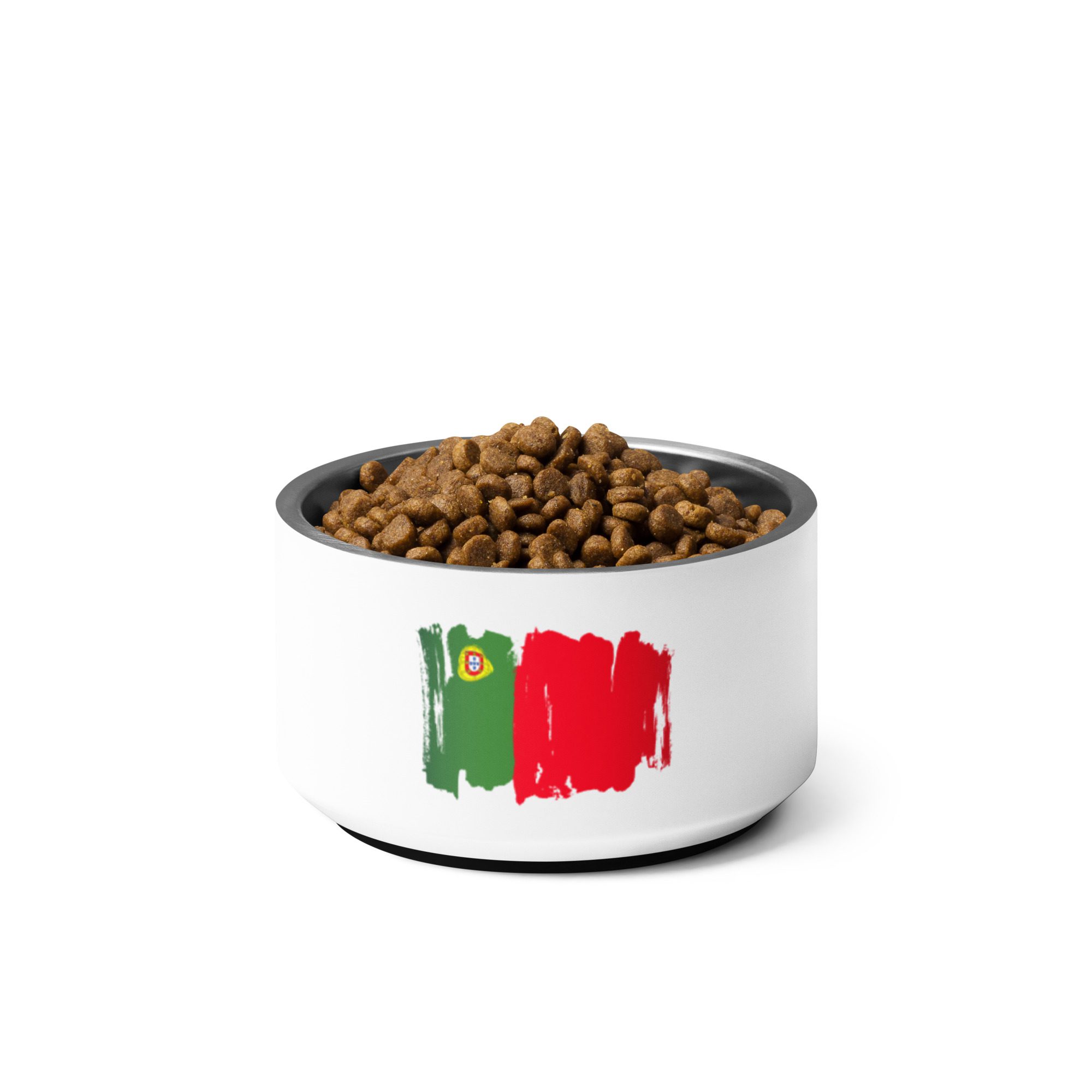 Each pet dog bowl boasts a high-resolution print of the Portuguese flag, infusing a patriotic spirit into your pet’s feeding routine. The vivid green and red hues, coupled with the iconic shield design, create a visually stunning contrast against the sturdy white bowl, ensuring your pet’s feeding station stands out in style.